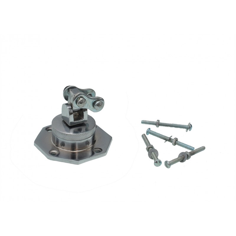 Сделана из никелированной стали. Вращается во все стороны на подшипнике.